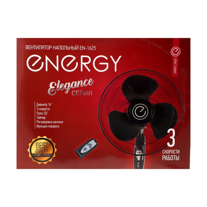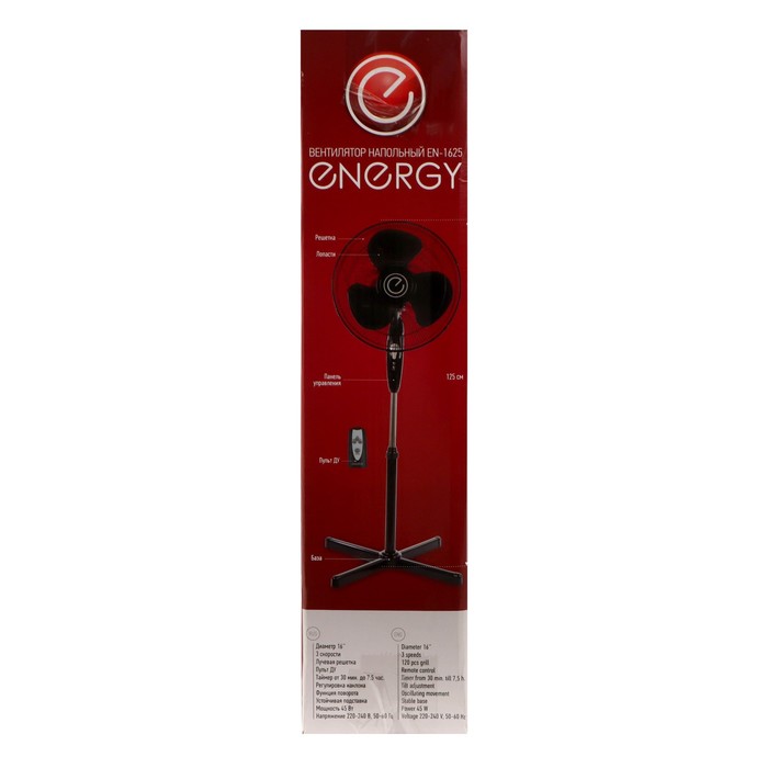 Вентилятор Energy ELEGANCE EN-1625, напольный, 45 Вт, 3 скорости, таймер, ПДУ, чёрный — Характеристики