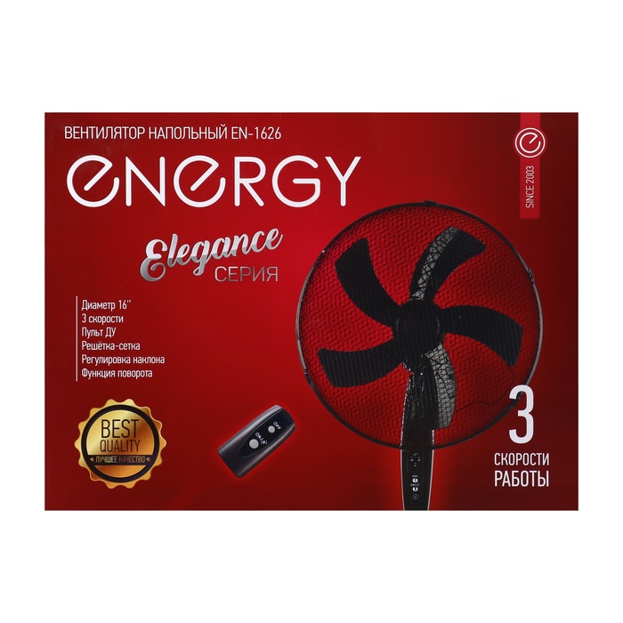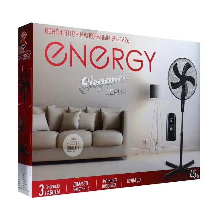 Вентилятор Energy ELEGANCE EN-1626, напольный, 45 Вт, 3 режима, чёрный — Характеристики