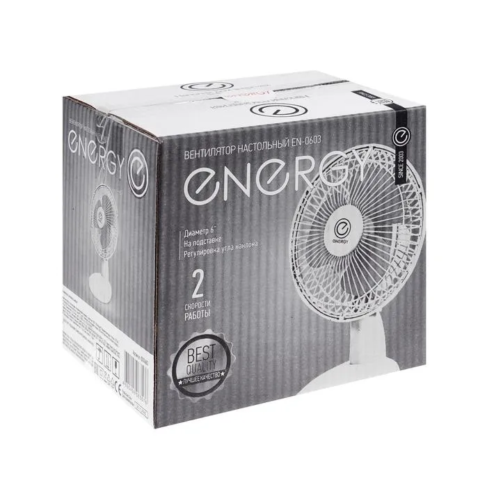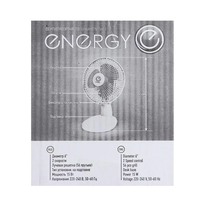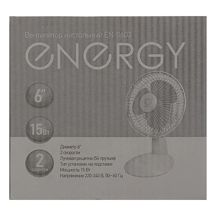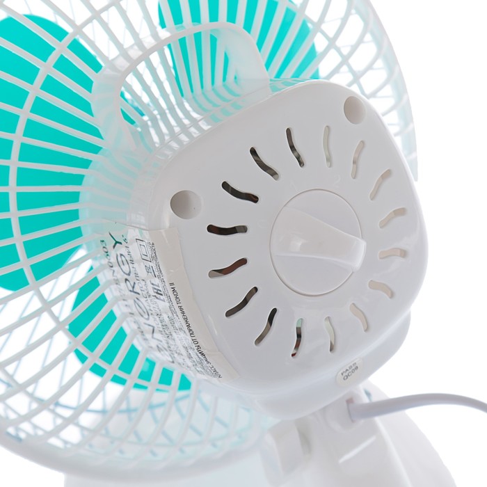 Вентилятор ENERGY EN-0603, настольный, 15 Вт, d=15 см, 2 скорости, бело-бирюзовый — Характеристики