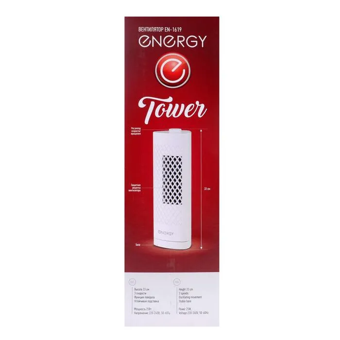 Вентилятор ENERGY EN-1619 TOWER, напольный, 25 Вт, 3 скорости, белый — Характеристики