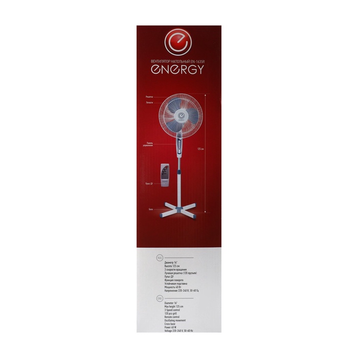 Вентилятор Energy EN-1635R, напольный, 40 Вт, 3 режима, бело-голубой — Характеристики
