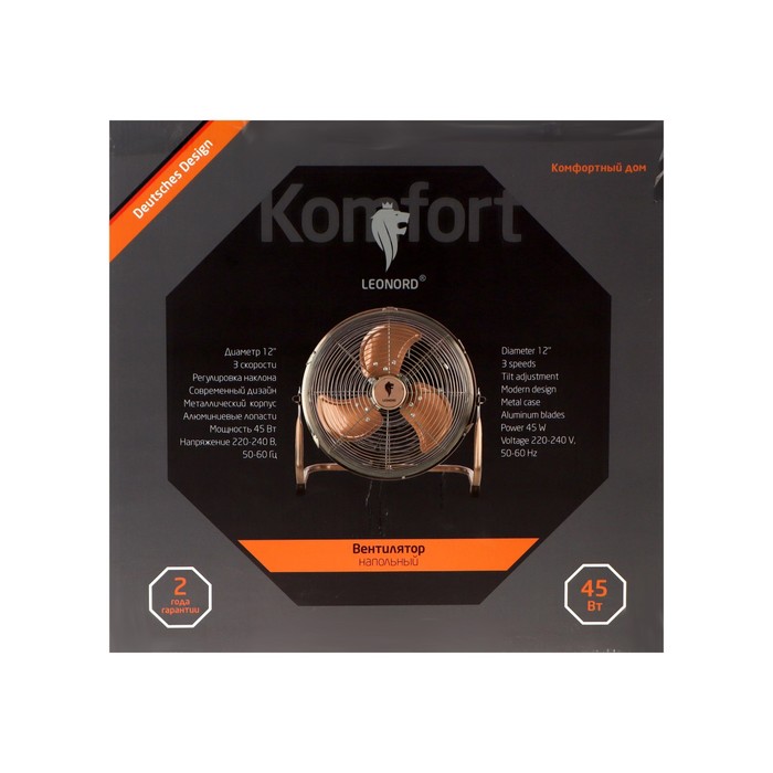 Вентилятор Leonord LE-1604, напольный, 45 Вт, 3 скорости, цвет медь — Характеристики