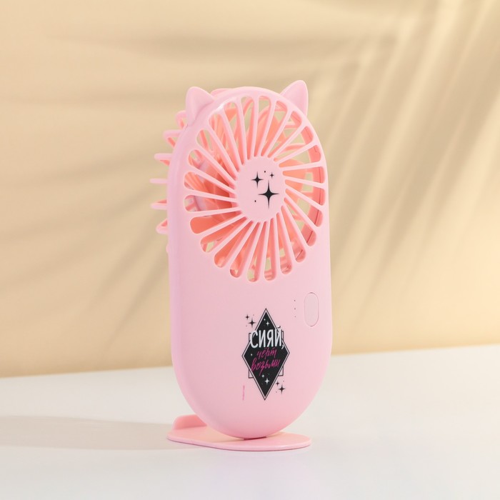 Миниатюрный вентилятор, который можно положить в карман, сумку или рюкзак, спасет вас в жаркую погоду! Также его можно поставить на стол с помощью специальной подставки, которая идет в комплекте.