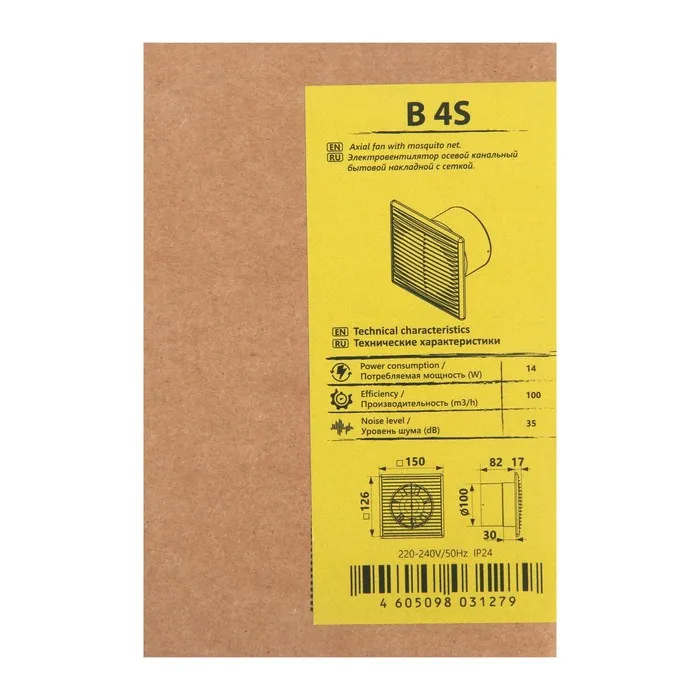 Вентилятор вытяжной AURAMAX В 4S, 150x110 мм, d=100 мм, 220 В, 14 Вт, 35 дБ — Характеристики
