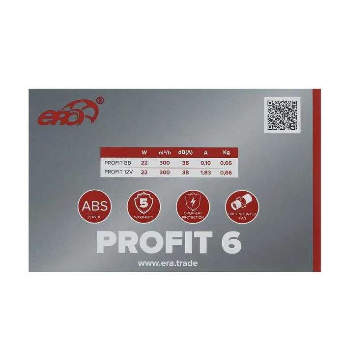 Вентилятор вытяжной ERA PROFIT 6, d=160 мм, 220‒240 В, канальный — Характеристики