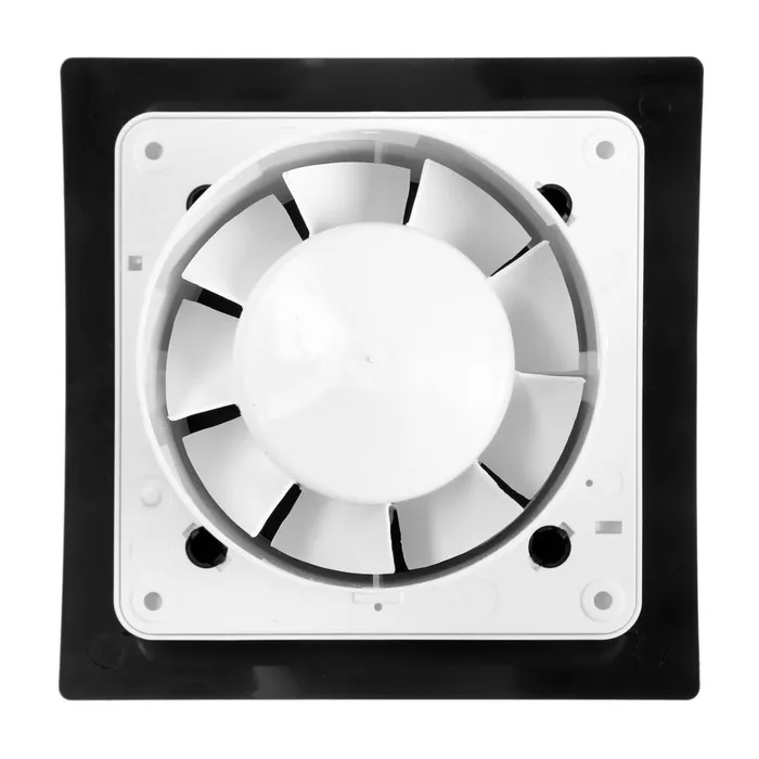 Настенный вентилятор черного матового цвета для эффективной вытяжки воздуха. Современный дизайн и высокая производительность делают его идеальным выбором для любого интерьера.