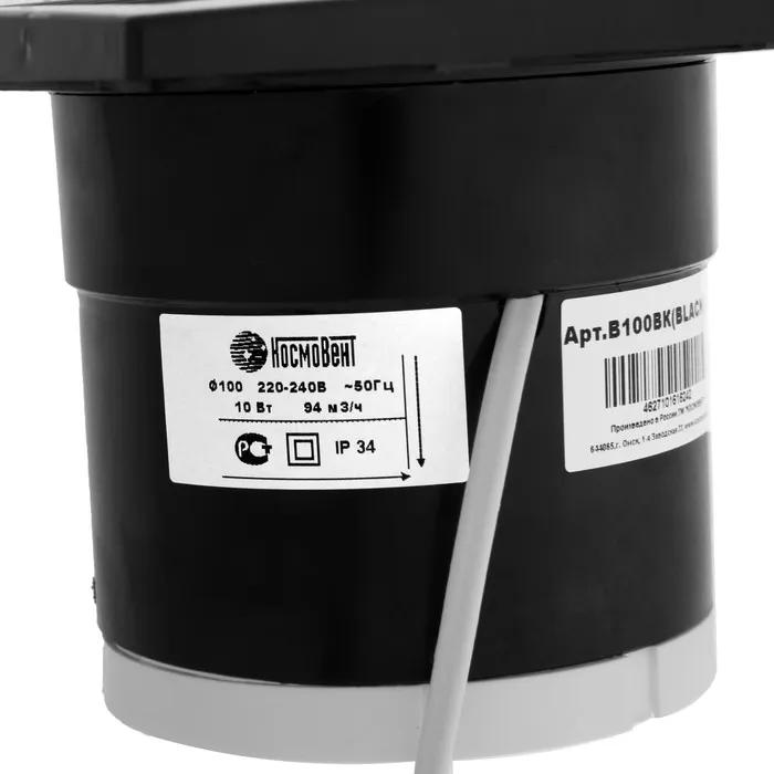 Вентилятор вытяжной "КосмоВент" В100ВК-ок, d=100 мм, 10 Вт, 40 дБ, 105 м³/ч, выкл, обр.клап — Характеристики