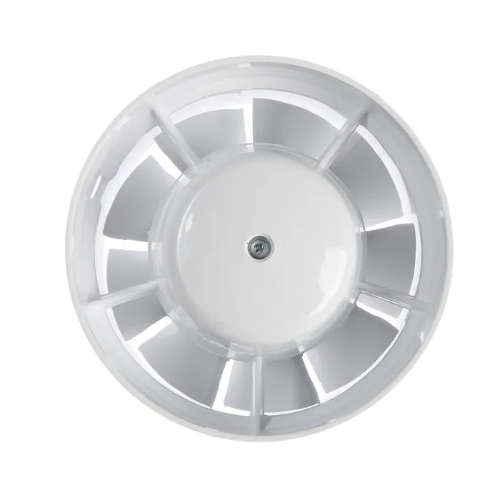 Канальный вентилятор для эффективной циркуляции воздуха. Компактные размеры и белый цвет делают его незаметным элементом системы вентиляции.