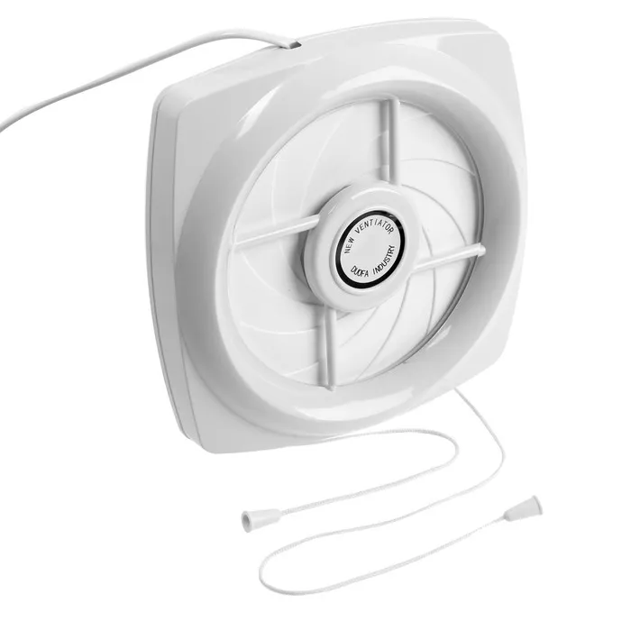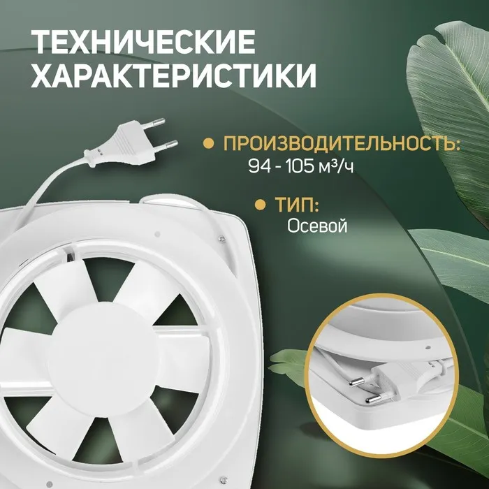 Оснащен вентилятор жалюзи, которые предотвращают обратный поток воздуха и защищают от попадания пыли и загрязнений. Устройство также включает провод для удобного подключения.