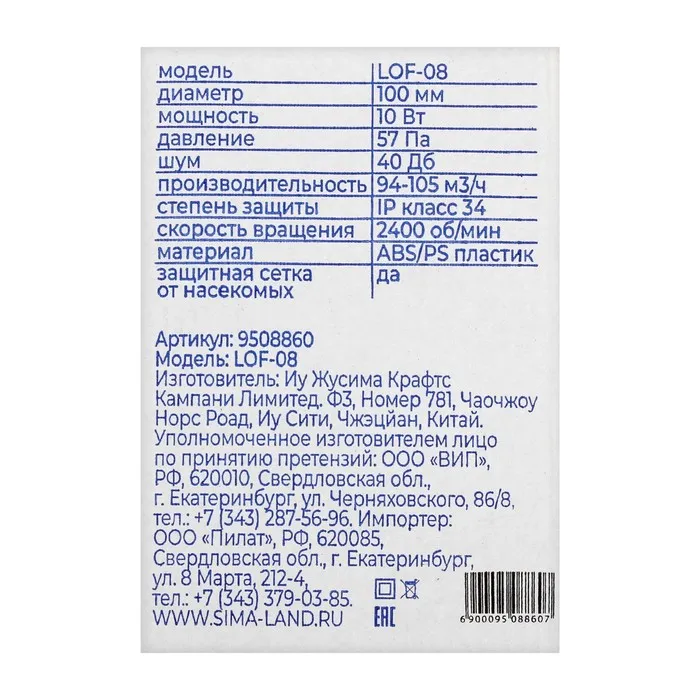 Вытяжной вентилятор ZEIN LOF-08 с диаметром 100 мм — это простой и эффективный вариант для обеспечения вентиляции в небольших помещениях.
