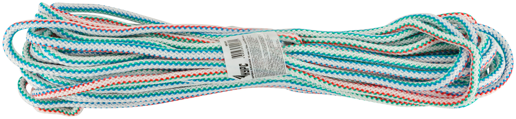 Эта прочная полипропиленовая веревка от бренда КУРС станет незаменимым помощником для различных хозяйственных работ. С длиной 20 метров и диаметром 10 мм она легко справится с задачами, требующими надежной фиксации или подвеса.