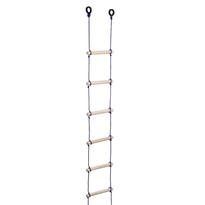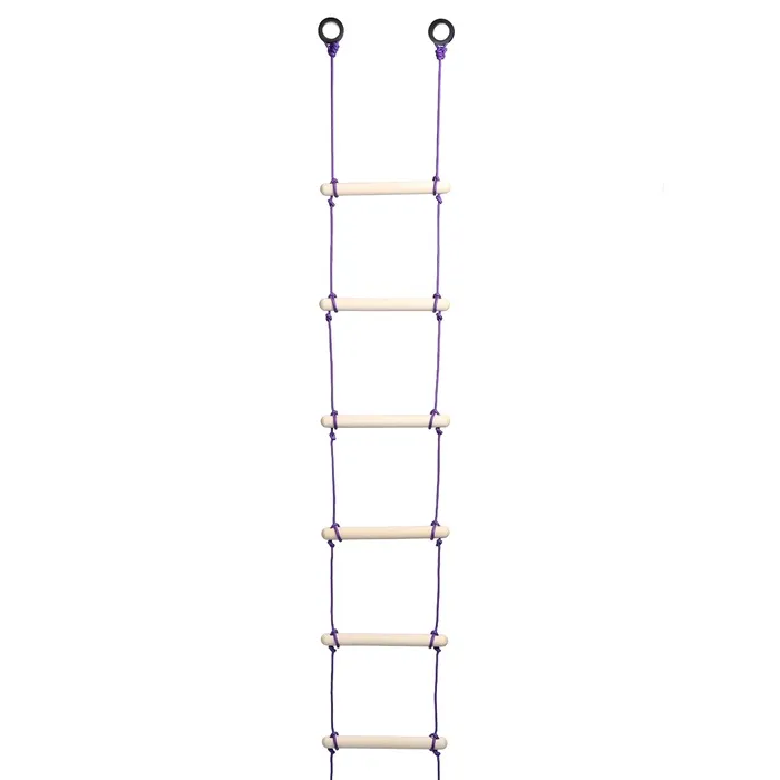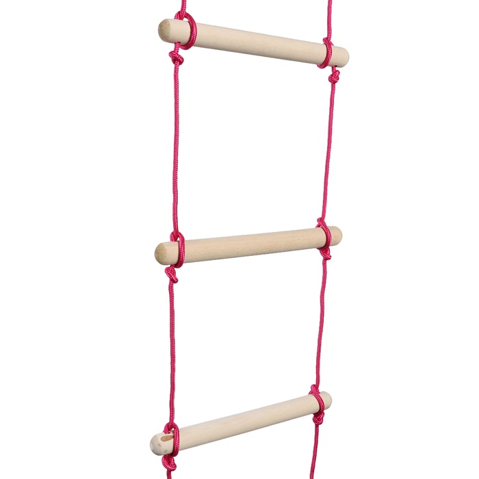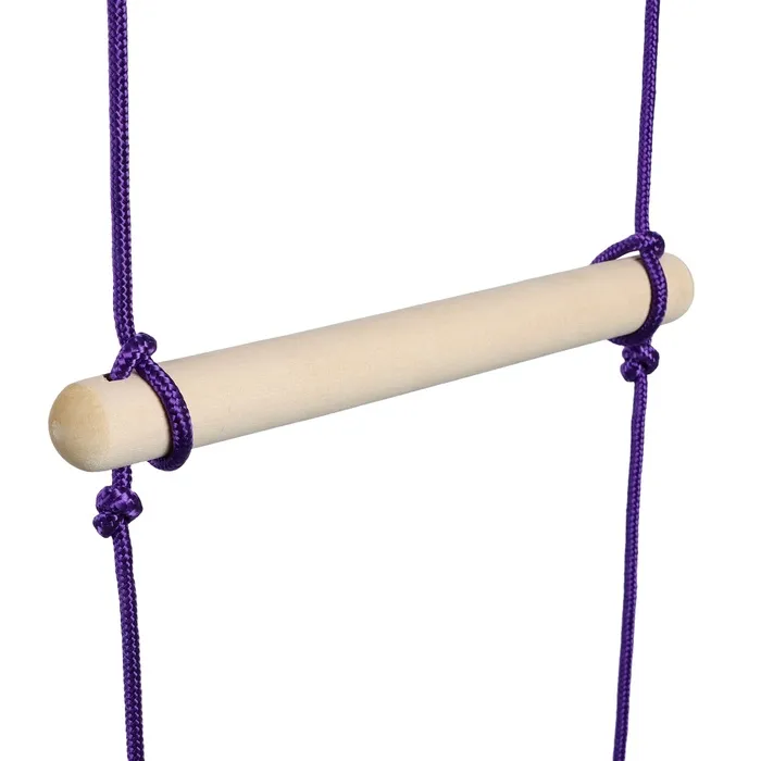 Безопасный и экологичный снаряд поможет развить вестибулярный аппарат и укрепить многие группы мышц. Используйте лестницу с раннего возраста, прикрепив её горизонтально или диагонально, малыш будет цепляться ручками, тем самым развивать моторику и учиться ходить без помощи взрослых. С этим спортивным атрибутом ваш ребёнок проведёт время с пользой.