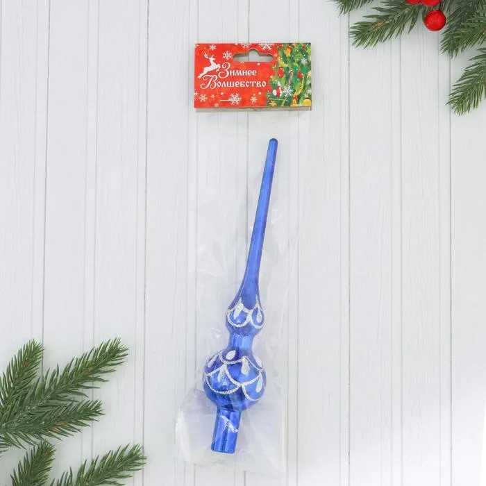 Верхушка на елку "Узоры" 20 см, синий