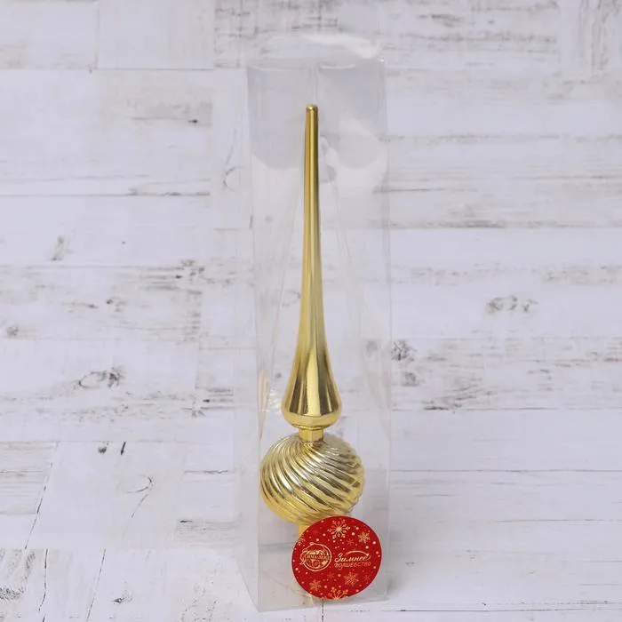 Этот топпер — не просто верхушка, а законченная нота новогоднего декора. Его золотой блеск напоминает первый луч солнца сквозь морозное утро или сияние далёкой рождественской звезды. Размер в 25 см делает его подходящим как для больших, так и для мини-елок — он остаётся ярким и заметным акцентом, не нарушая пропорций.