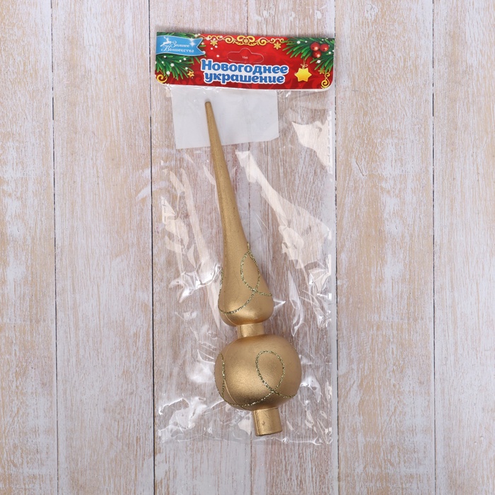 Этот топпер — не просто украшение, а законченная нота праздничного оформления. Его золотой блеск напоминает свет рождественской звезды или первый снег в лучах заходящего солнца. Размер в 18 см делает его удобным для любой ёлки — он сохраняет пропорции и остаётся заметным даже в миниатюрных композициях.