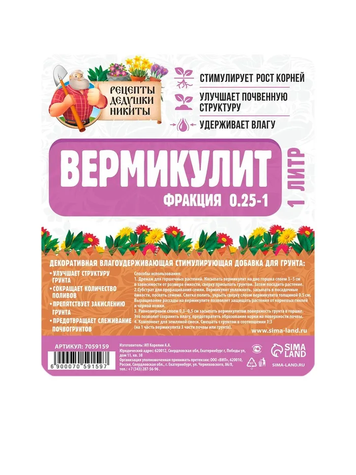 Вермикулит от ТМ "Рецепты Дедушки Никиты"