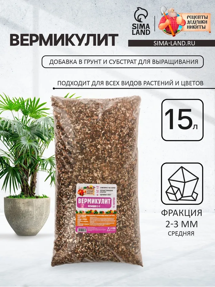 Это идеальный помощник для садоводов и цветоводов, стремящихся создать оптимальные условия для роста своих растений. Фракция 3-5 мм обеспечивает отличную воздухопроницаемость и дренаж, что особенно важно для здоровья корневой системы. Используйте вермикулит при посадке растений, добавляя его в грунт для улучшения его свойств. Он также отлично подходит для мульчирования, что помогает сохранить влагу и защитить растения от перепадов температуры.