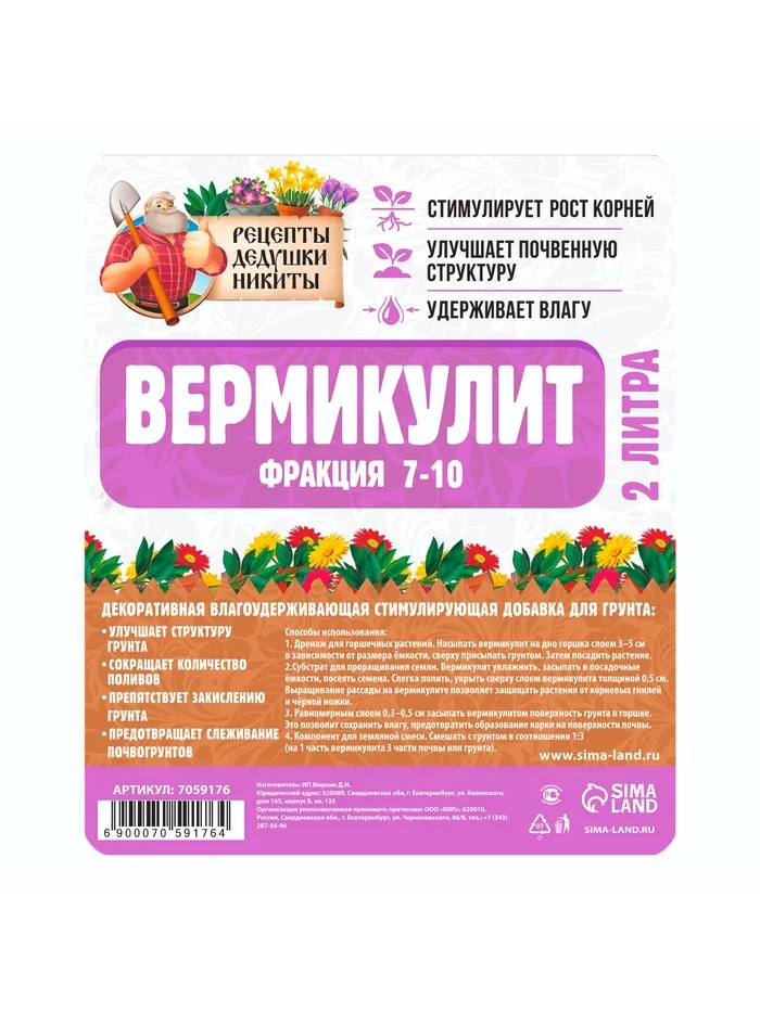 Вермикулит от ТМ "Рецепты Дедушки Никиты"