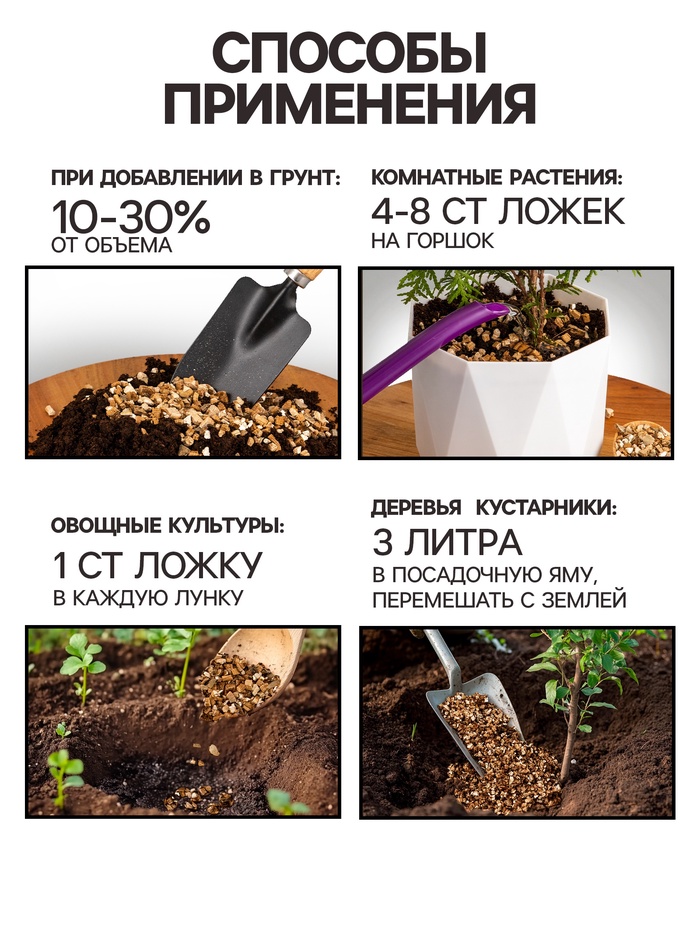 - Уменьшает частоту полива благодаря способности удерживать влагу.