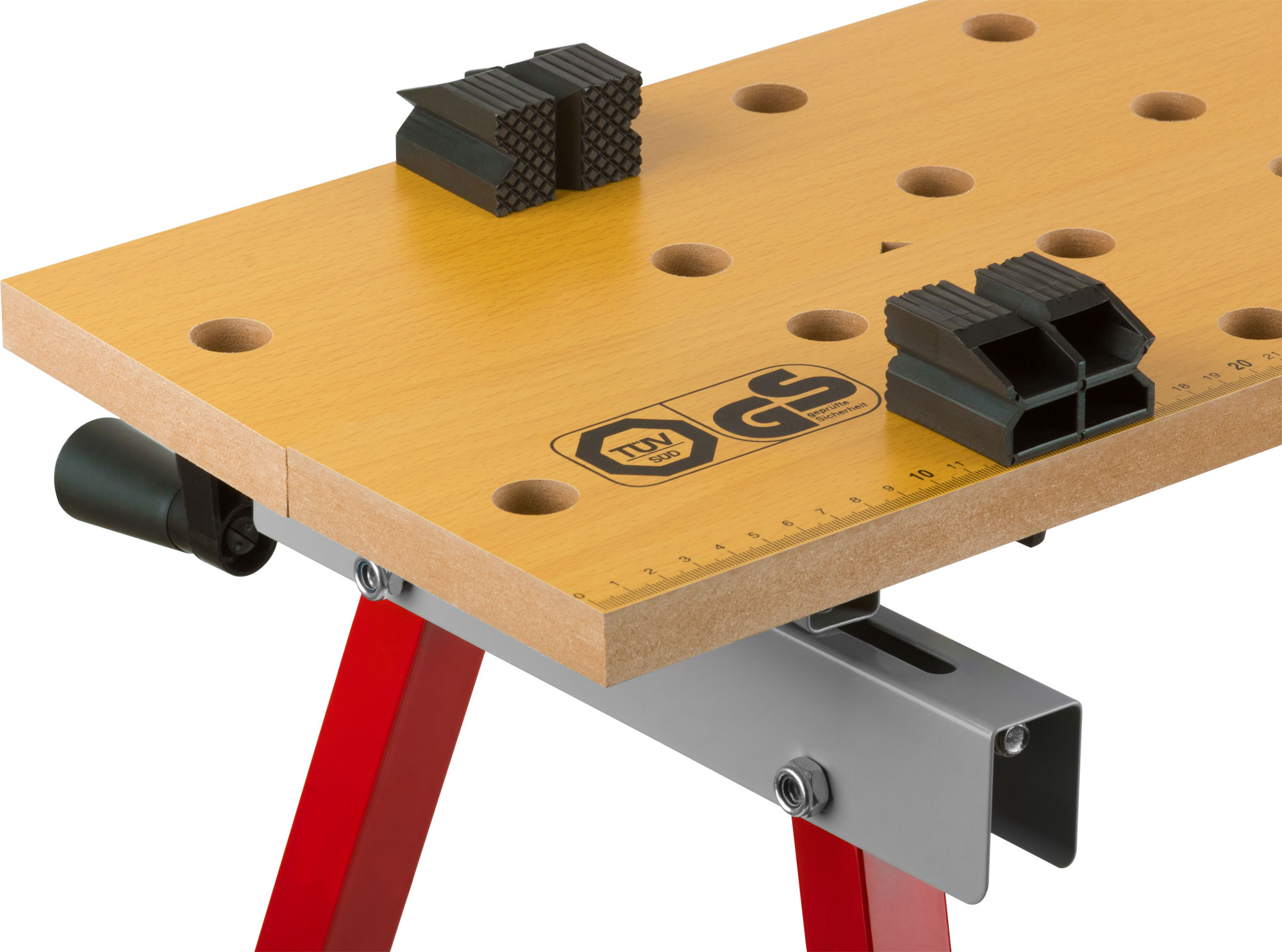 Складной верстак FIT с рабочей высотой 760 мм идеально подходит для установки и фиксации различных изделий во время обработки. Он позволяет надежно закрепить предметы весом до 100 кг и шириной до 230 мм, что делает его отличным помощником в мастерской.
