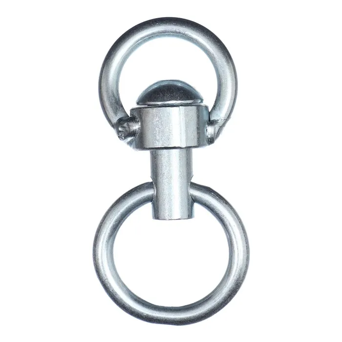 Вертлюг с кольцом, средний (длина-7,5 см, ширина-3,5 см) — высококачественный и надёжный элемент амуниции для собаки. Он препятствует закручиванию цепи или поводка и предотвращает их запутывание.