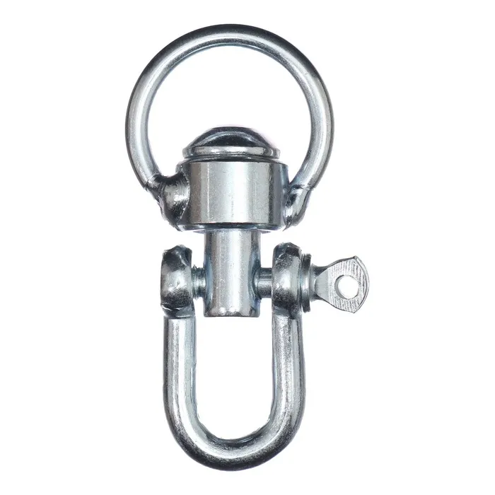 Вертлюг со скобой, малый (длина-6 см, ширина-3 см) — высококачественный и надёжный элемент амуниции для собаки. Он препятствует закручиванию цепи или поводка и предотвращает их запутывание.