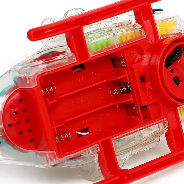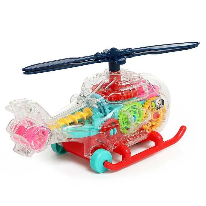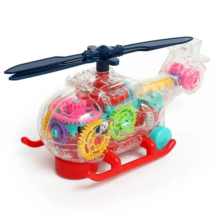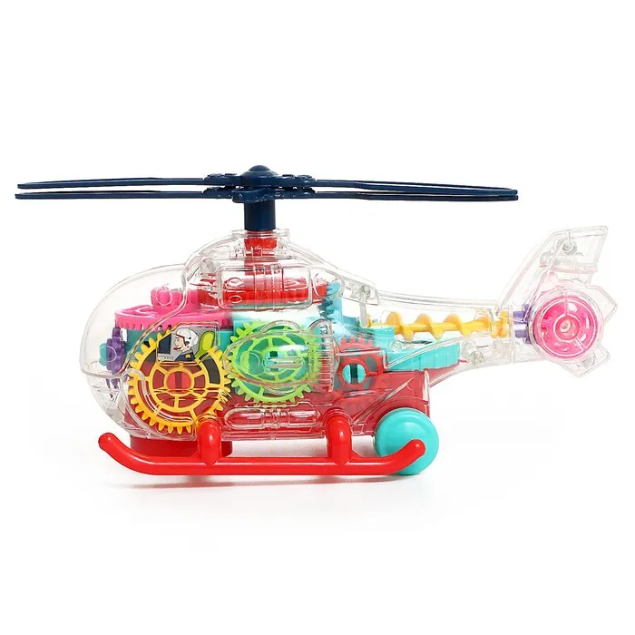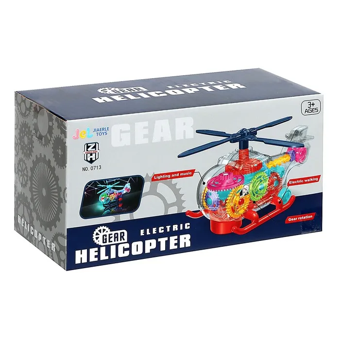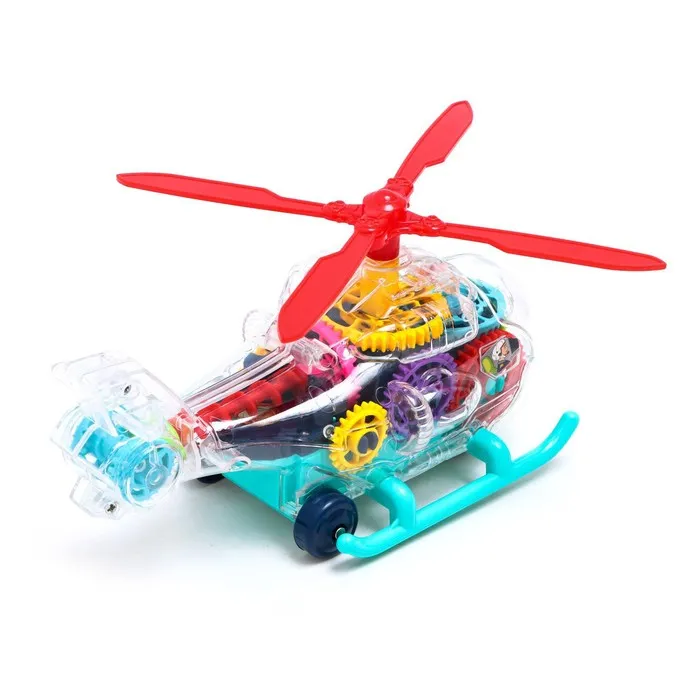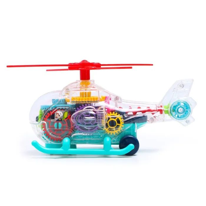 - Прозрачный корпус: через прозрачные стенки видно, как крутятся шестерёнки внутри вертолёта. Это не только завораживает, но и помогает ребёнку понять, как работает механизм.