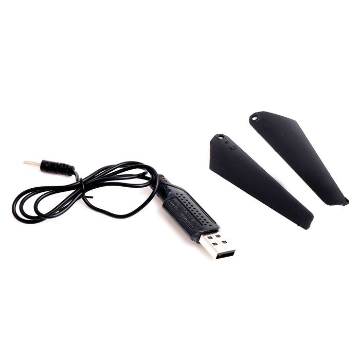 - Вертолёт работает от аккумулятора и заряжается от USB.