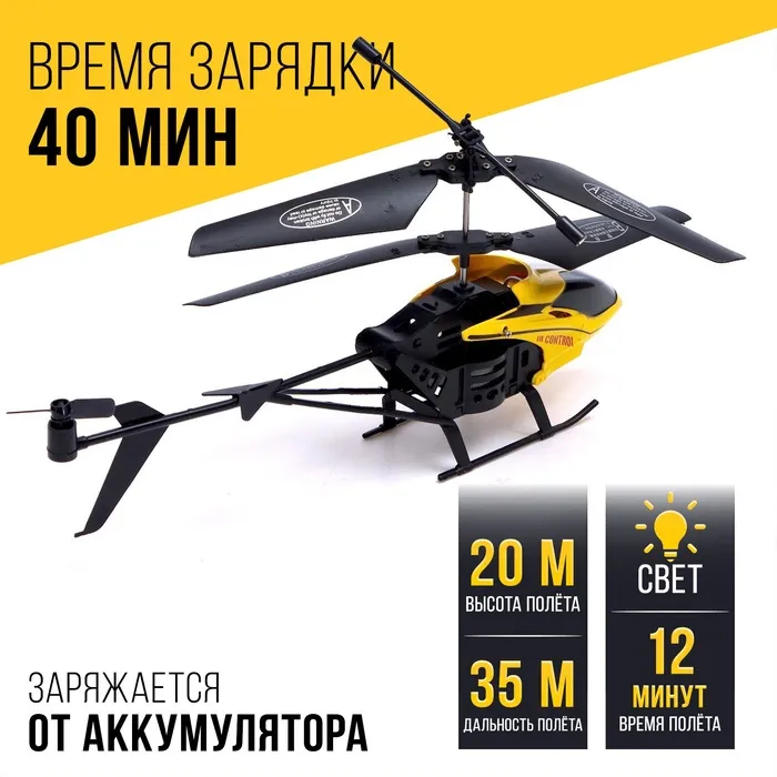 Вертолёт радиоуправляемый «Воздушный король», работает от аккумулятора, цвет жёлтый — Характеристики