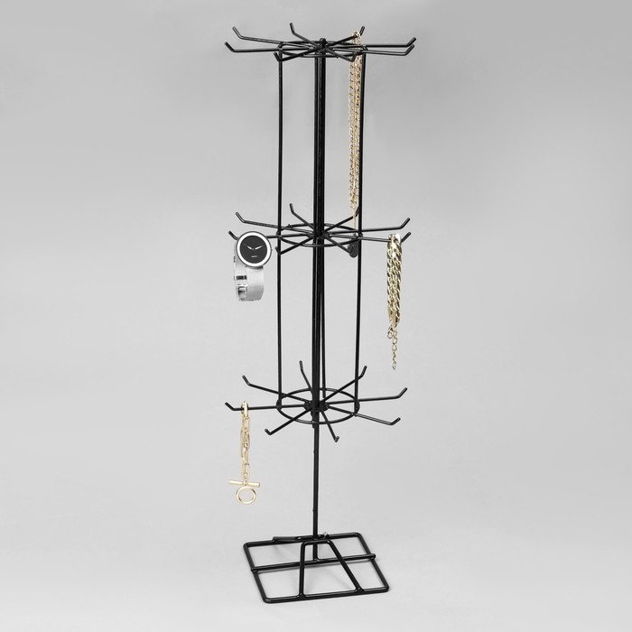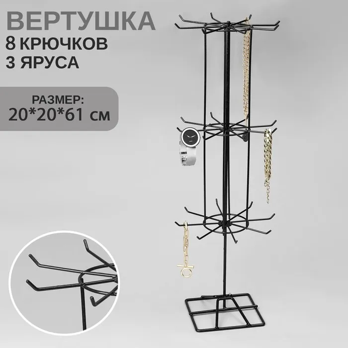 Вертушка, 3 яруса по 8 крючков, 20×20×61, цвет чёрный — Характеристики