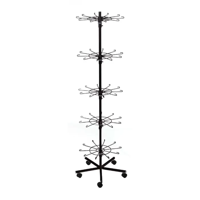 Вертушка на колёсах с пятью ярусами и крючками — это не только практичное, но и стильное решение для вашего бизнеса или личного использования. Она поможет упорядочить пространство и создать удобные условия для демонстрации товаров или хранения аксессуаров.