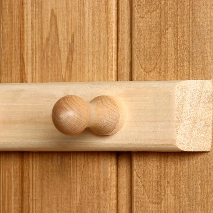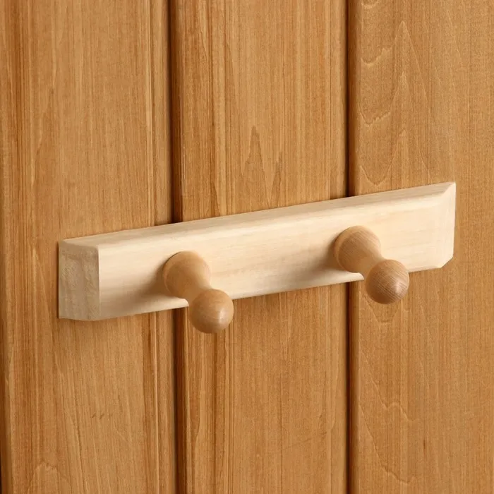 Баня, как и театр, начинается с вешалки. Повесьте изделие у входа полку, чтобы все было на своих местах. Прочные крючки могут выдержать большую нагрузку. Легко крепиться к стене гвоздями или саморезами.
