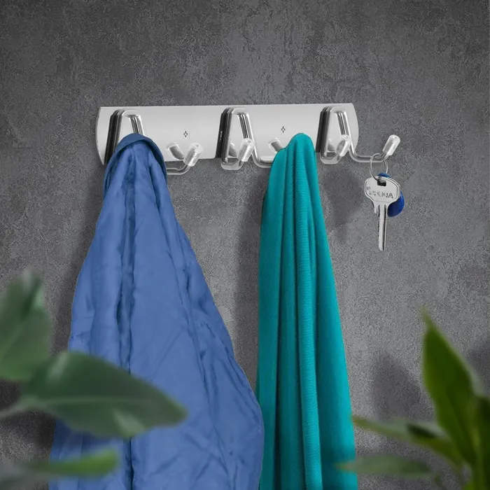 Идеально подходит для прихожей или гардеробной комнаты. Матовый хром добавляет стильный акцент в интерьер, сохраняя при этом функциональность и практичность. Конструкция выдерживает значительные нагрузки.