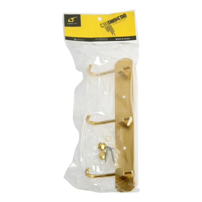 Металлическая вешалка с тремя рожками в золотом цвете — стильное и функциональное решение для организации пространства. Золотистый оттенок добавляет роскоши и элегантности в интерьер.