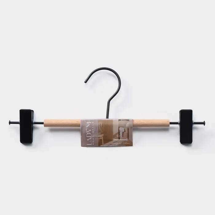 Вешалка для брюк и юбок LaDо́m Laconique, 28×11.5×2.8 см, с зажимами, чёрная — Характеристики