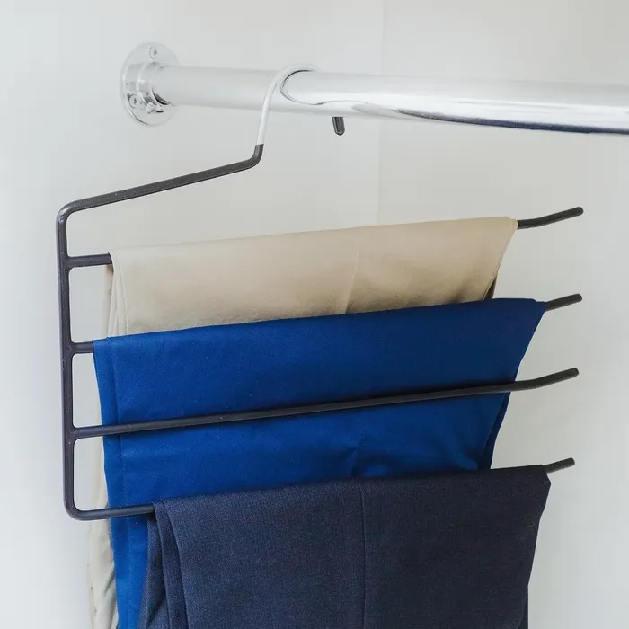 Брюки разных фасонов и моделей имеют одно общее свойство: их сложно хранить. На неудачно сложенной одежде могут появиться заломы и складки, из-за чего вещи приходится гладить повторно. Это маленькое неудобство можно решить с помощью специального предмета.