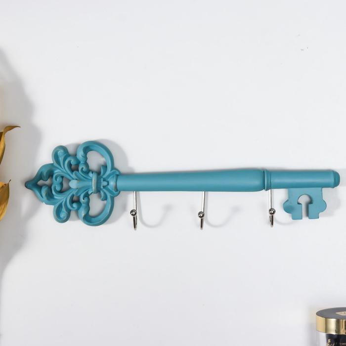 Настенные крючки декоративные «Ключ ажурный», ключница, голубая патина, 9×3×31.5 см