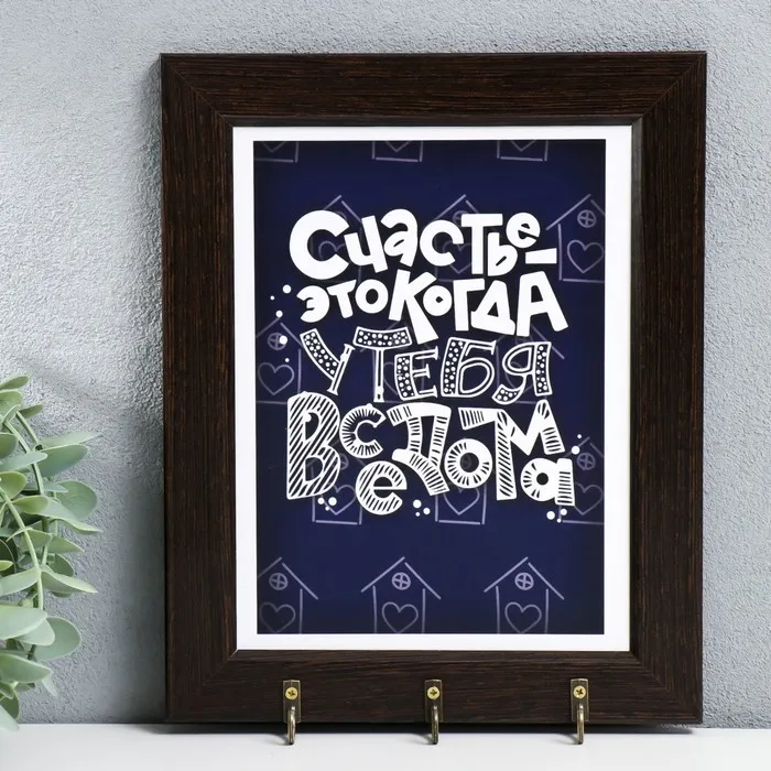 Крючки декоративные «Счастье когда все дома», ключница настенная, панно, 20×25 см венге
