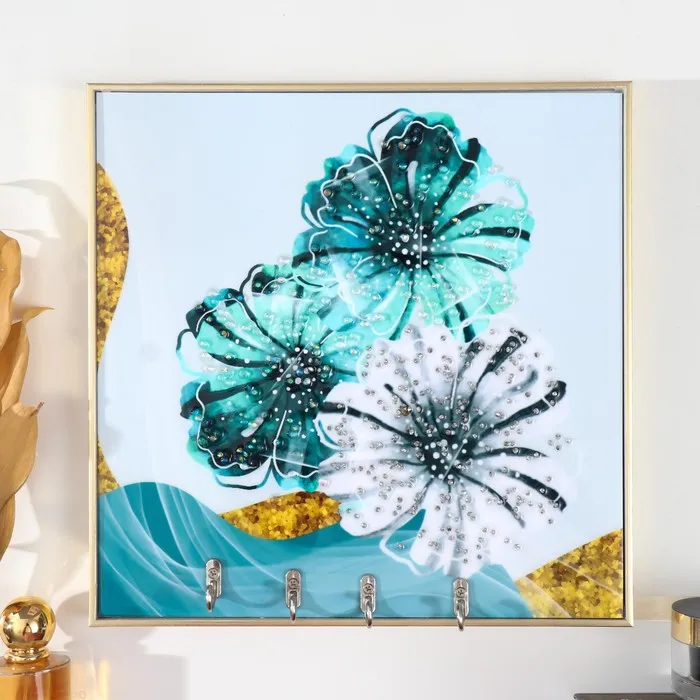 Настенные крючки декоративные «Хризантемы», 4 крючка, пластик, МДФ, стразы, золото, 29×1.8×29 см