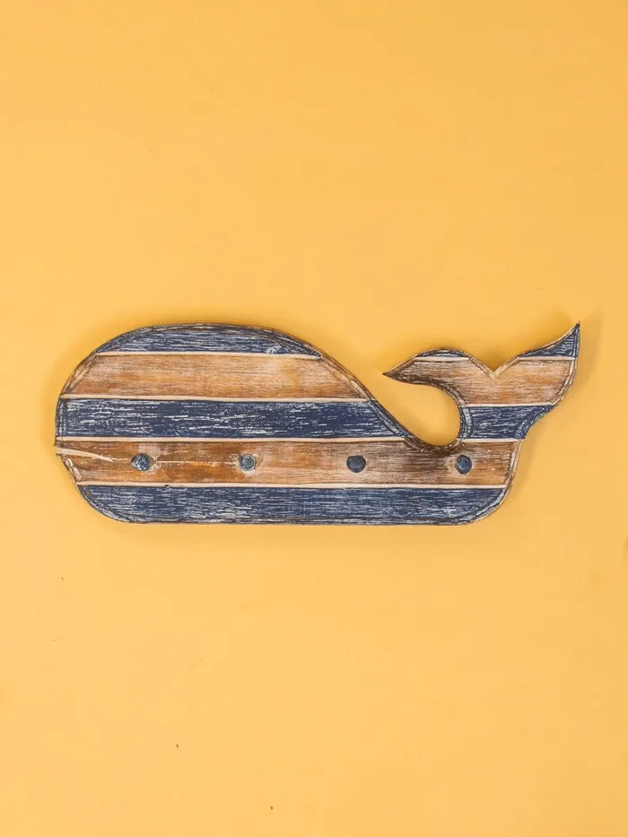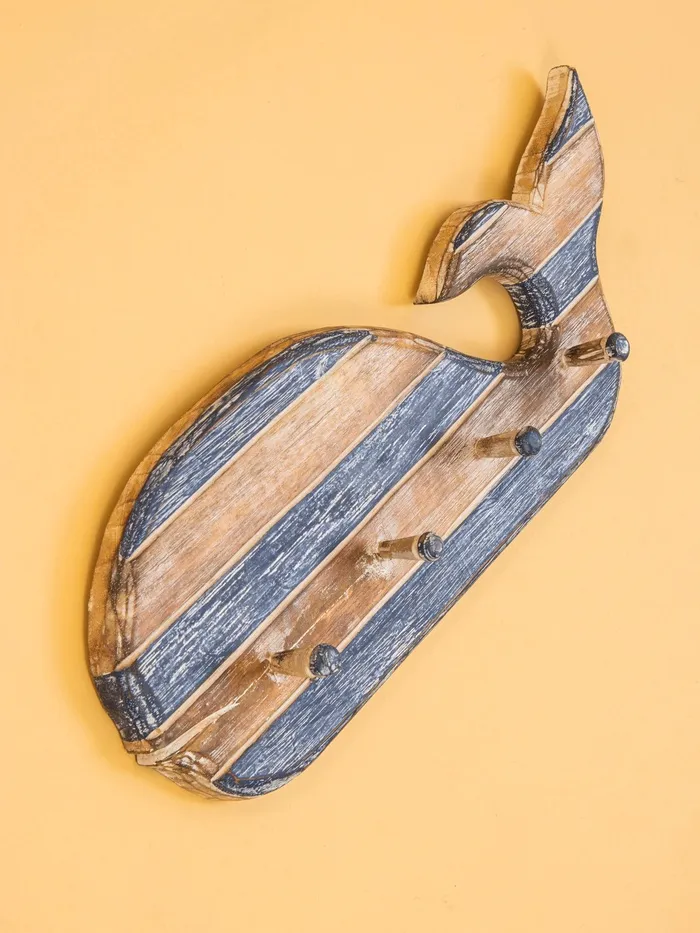 Вешалка «Кит», с 4 крючками, 44×2×18 см, дерево, синяя