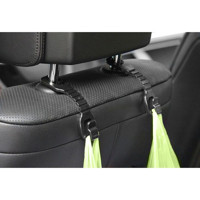 Комплект состоит из двух пластиковых крючков, которые устанавливаются на штангу подголовника заднего или переднего сиденья автомобиля. Такая конструкция даёт возможность подвешивать одежду, сумки, пакеты, пакеты с покупками, сумки-тачки и другие вещи - экономит пространство, помогает поддерживать порядок в салоне и предотвращает загрязнение сидений и пола. Вешалки не требуют инструментов для установки: достаточно надеть на подголовник - и они готовы к использованию.