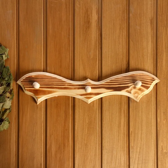 Баня, как и театр, начинается с вешалки. Повесьте изделие у входа полку, чтобы все было на своих местах. Прочные крючки могут выдержать большую нагрузку. Легко крепиться к стене гвоздями или саморезами.