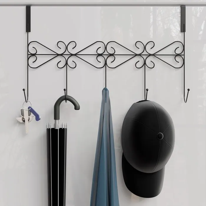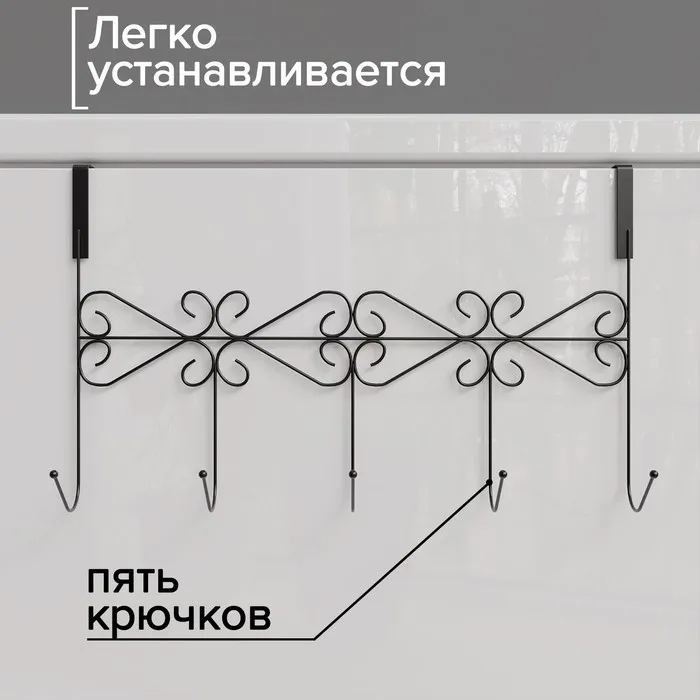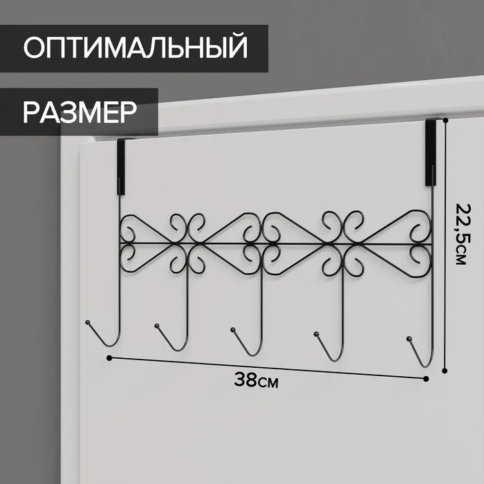 Вешалка на дверь на 5 крючков Доляна «Вензель», 38×22.5×10 см, чёрная — Характеристики