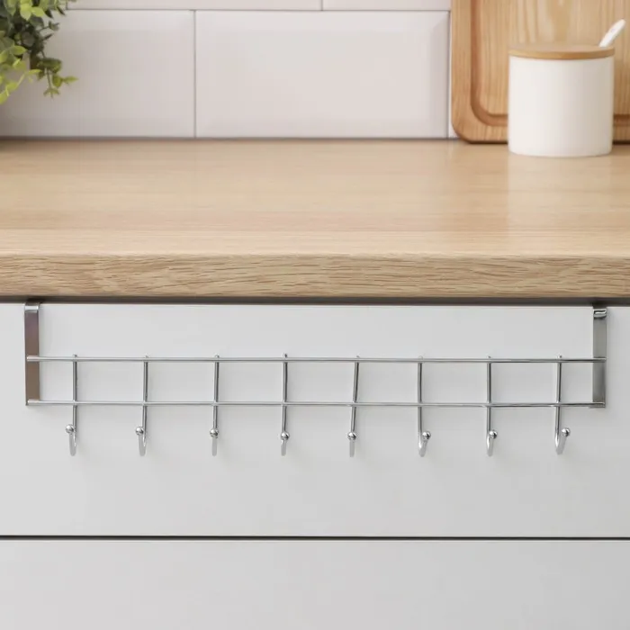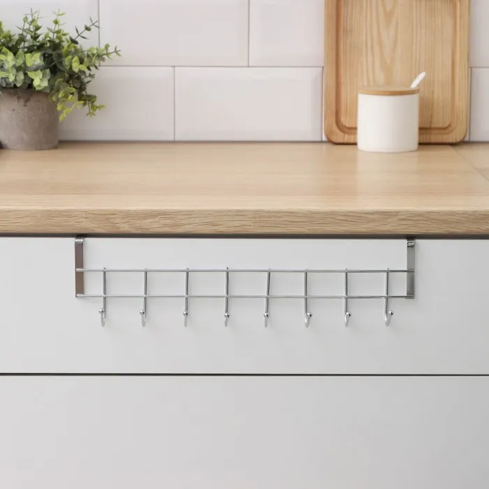 Вешалка — необходимая вещь в каждом доме, но совсем не обязательно портить из-за неё стены или освобождать место на полу для размещения стойки. Просто повесьте её на комнатную дверь! Вешалка имеет 8 крючков.