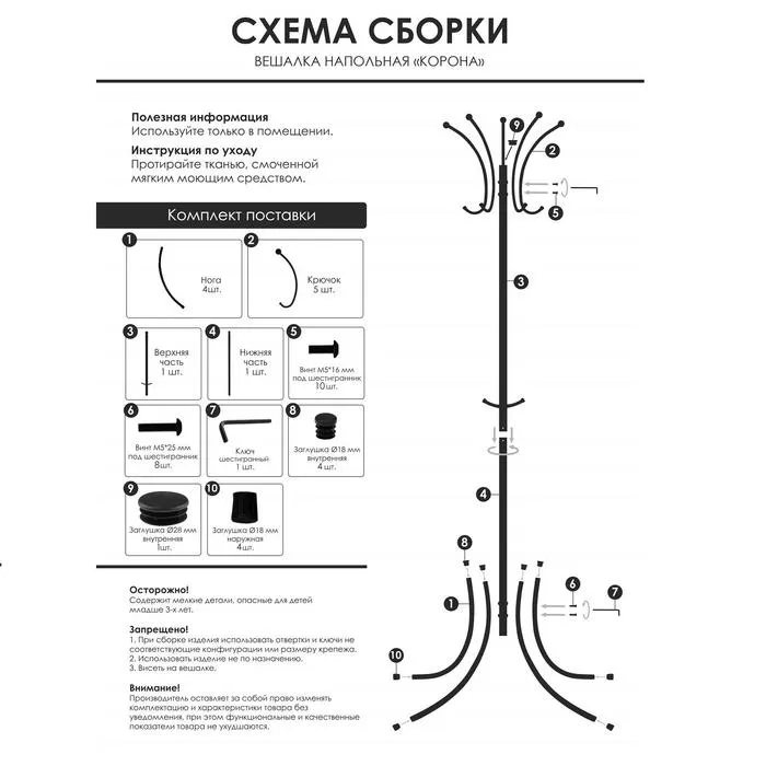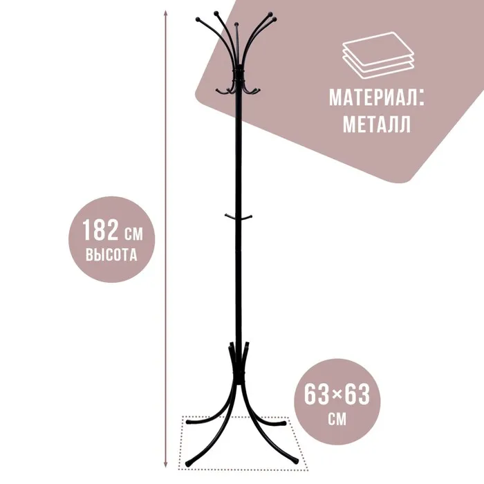 Вешалка напольная «Корона», 63×63×182 см, разборная, чёрная — Характеристики