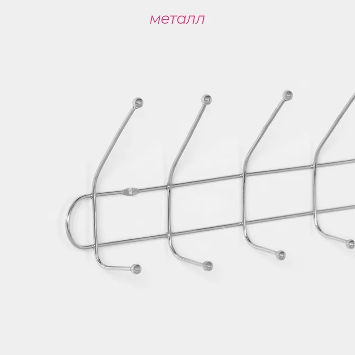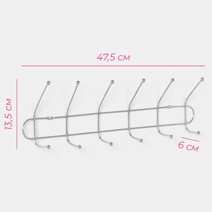 Вешалка настенная Доляна «Блеск», 6 двойных крючков, 47.5×13.5×6 см, хромированная — Характеристики