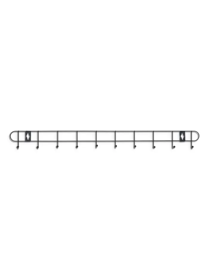 Ощутите гармонию порядка и стиля с настенной вешалкой, которая станет удачным дополнением вашего интерьера. Элегантная вешалка с десятью крючками выполнена в классическом черном цвете, идеально подходящем для мебели и декора в любом стиле. С размерами 55х3,5х5 см, она займет минимальное пространство, добавляя функциональность и элегантность в ваше прихожее или кухонное пространство.