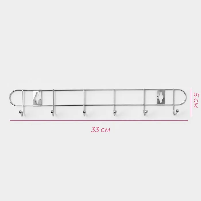 Вешалка настенная Доляна «Лето», 6 крючков, 33×3.5×5 см, хромированная — Характеристики
