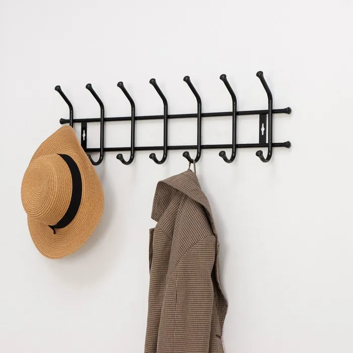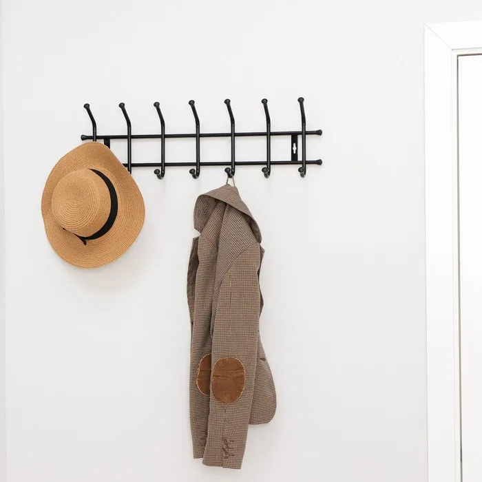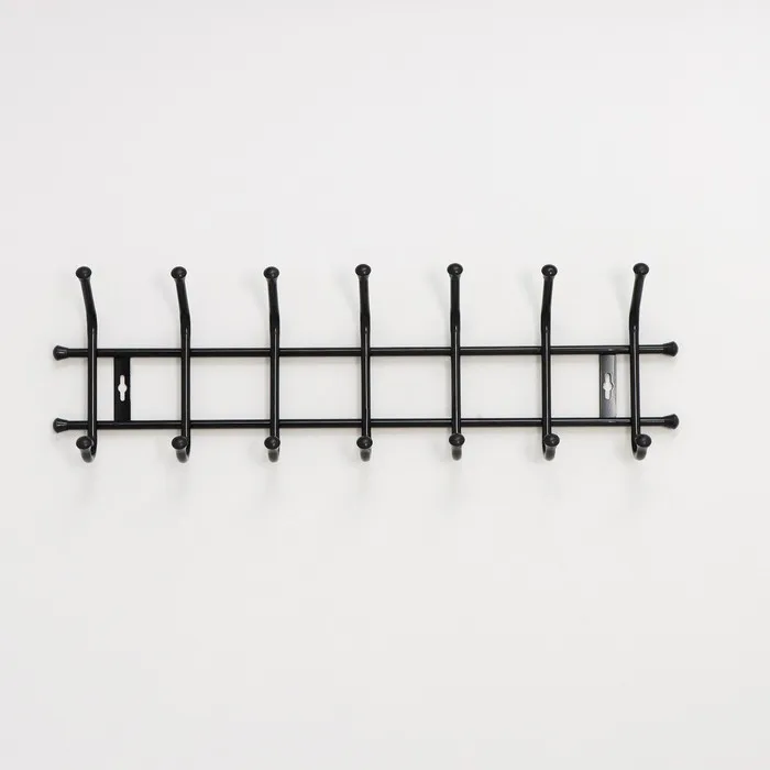 Вешалка настенная на 7 крючков, 69×21,5 см, чёрная — Характеристики