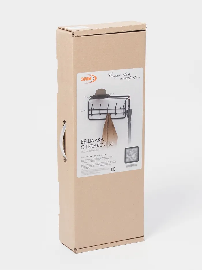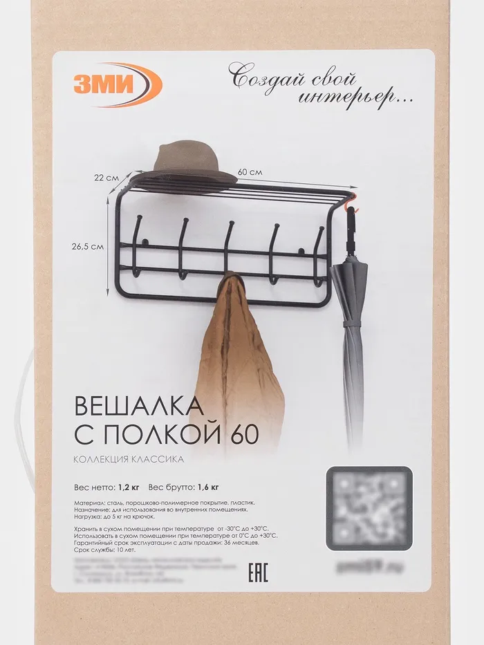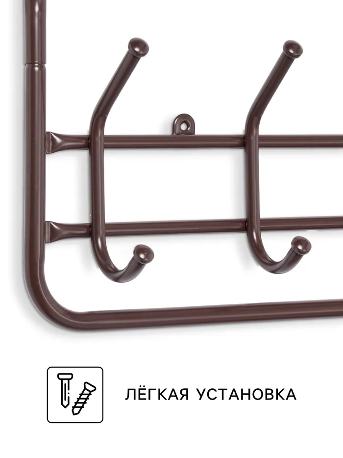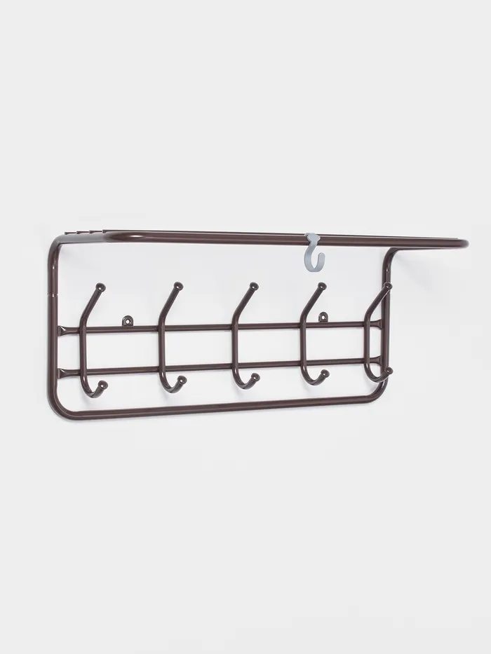 Вешалка настенная, с полкой, 5 крючков, 60 см, коричневая — Характеристики